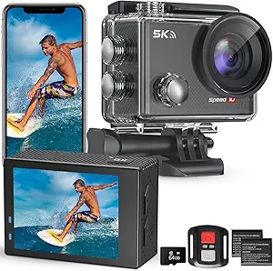 This action camera records in 5K at 30FPS with a 170° wide-angle lens for clear, immersive footage. Waterproof up to 131FT, it’s perfect for underwater sports, biking, and outdoor adventures. With EIS stabilization, WiFi app control, and a 64GB card included, it ensures smooth and reliable performance.