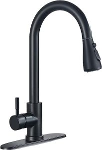 One of the standout features of black kitchen sink faucets is their versatility and functionality. The pull-down sprayer feature allows for easy maneuverability and effortless cleaning. Whether you need to rinse dishes, fill pots, or clean the sink, the sprayer provides the flexibility to direct the water flow wherever it’s needed. This functionality makes it ideal for everyday kitchen tasks and ensures a more efficient workflow.