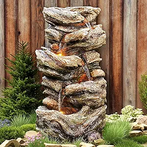 Are you looking to add a touch of tranquility and elegance to your outdoor space? The 32″ High 5-Tier Outdoor Water Fountain with LED Lights is a perfect choice. Designed with a natural wooden look, this resin-constructed waterfall blends seamlessly into gardens, patios, and yards. Whether you want to create a relaxing oasis or enhance your landscape with a unique focal point, this fountain offers beauty and serenity in one stunning package.—Features and Benefits1. Natural Wooden Look with Durable Resin ConstructionWhile it mimics the look of natural wood, this fountain is actually made of high-quality resin. This material ensures durability, weather resistance, and easy maintenance. Unlike real wood, resin won’t rot, warp, or require constant upkeep, making it a long-lasting outdoor décor piece.2. Five-Tier Waterfall for a Soothing EffectThe multi-tiered design allows water to cascade smoothly from top to bottom, creating a peaceful and natural sound of flowing water. This gentle waterfall effect can help reduce stress, mask unwanted noise, and create a calming atmosphere in any outdoor setting.3. Built-In LED Lights for a Magical GlowEquipped with LED lights, this fountain remains a stunning feature even after sunset. The soft glow enhances the cascading water, creating a mesmerizing nighttime ambiance for your garden or patio. Whether hosting an evening gathering or enjoying a quiet night outdoors, the illuminated waterfall adds charm and beauty.4. Versatile Placement for Any Outdoor SpaceAt 32 inches in height, this fountain is perfectly sized to fit various outdoor areas. Whether placed among plants, near a seating area, or as a centerpiece in your yard, it enhances any landscape with its natural aesthetic and gentle water sounds.5. Easy Installation and MaintenanceThis fountain is designed for hassle-free setup. Simply fill it with water, plug it in, and enjoy the tranquil ambiance. The self-contained water system continuously recirculates the water, reducing the need for frequent refills. Plus, the resin material is easy to clean, ensuring long-term beauty with minimal effort.—Why Choose This Water Fountain?Enhances Relaxation: The soothing sound of flowing water creates a stress-free outdoor retreat.Improves Aesthetic Appeal: The natural wood-look design blends beautifully with gardens, patios, and landscapes.Low Maintenance: Unlike real wood, the resin construction resists weather damage and requires minimal care.Perfect for Day & Night: LED lights make it a stunning visual feature even after dark.Easy Setup: No plumbing required—just plug and enjoy!—Final ThoughtsThe 32″ High 5-Tier Outdoor Water Fountain with LED Lights is an excellent addition to any garden, patio, or backyard. With its natural wood-look design, soothing waterfall sound, and mesmerizing LED lighting, it transforms any space into a peaceful and visually stunning retreat. Whether you’re a homeowner looking to enhance your outdoor oasis or searching for a thoughtful gift for a nature lover, this fountain is an investment in beauty and relaxation.Ready to bring serenity to your outdoor space? Get yours today and create your own calming oasis!