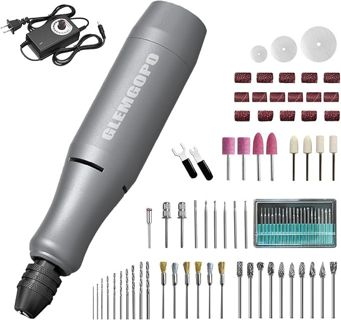 The Mini Rotary Tool Kit features a durable copper core motor with adjustable speeds up to 18,000 RPM, providing precision for various tasks. With 86 included accessories and 3-24V regulated power, it’s ideal for engraving, sanding, polishing, drilling, and DIY craft projects. Compact and versatile, it delivers reliable performance for hobbyists and professionals alike.