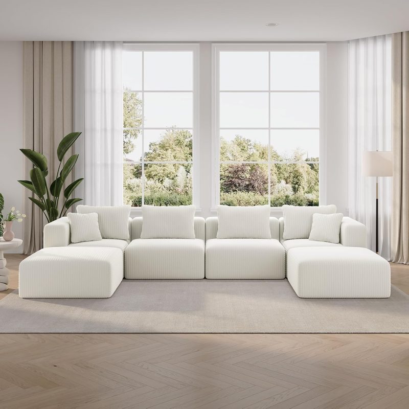 Novilla 141″ Modular Sectional Sofa, Modern Cloud Sectional Couch with Smarts Coil® Support, U-Shape Boneless Couch for Living Room Apartments, No Assembly Required, Off White (4 Seater + 2 Ottoman said:Novilla 141″ Modular Sectional Sofa: A Modern Cloud-Like Seating Experience for Contemporary Living SpacesCreating a comfortable and stylish living room starts with choosing the right sofa. The Novilla 141″ Modular Sectional Sofa is designed for modern homes that value comfort, flexibility, and effortless style. With its cloud-inspired design, spacious U-shape layout, and no-assembly construction, this sectional sofa is an ideal choice for apartments, lounges, and open living areas.Modern Cloud Design with Premium ComfortThe Novilla modular sectional sofa features a soft, cloud-like silhouette that instantly elevates the look of any living room. Its off-white color adds a clean, modern aesthetic while blending seamlessly with a variety of interior styles, from minimalist to contemporary. The plush cushioning and smooth fabric create a cozy seating experience that invites relaxation after a long day.Smarts Coil® Support for Lasting ComfortAt the core of this sectional couch is Smarts Coil® Support, a specially engineered system that offers balanced firmness and long-term durability. This support technology helps distribute weight evenly, reducing pressure points and maintaining the sofa’s shape over time. Whether you are sitting upright, lounging, or stretching out, the sofa provides consistent comfort and support.Spacious U-Shape Layout for Family and GuestsWith a generous 141-inch U-shape design, this modular sectional offers ample seating for families and gatherings. The configuration includes four spacious seats and two ottomans, allowing you to customize your layout according to your needs. Use the ottomans as footrests, extra seating, or extend them to create a lounge-style setup for movie nights and social events.Boneless Construction with No Assembly RequiredOne of the standout features of the Novilla sectional sofa is its boneless, no-assembly design. Unlike traditional couches that require tools and time-consuming setup, this sofa arrives ready to use. Simply position the modules in your living space and enjoy instant comfort. This makes it especially convenient for apartments, renters, and anyone looking for a hassle-free furniture solution.Ideal for Apartments and Modern HomesDesigned with urban living in mind, the Novilla modular sectional fits perfectly in apartments and compact living rooms while still offering a luxurious seating experience. Its modular flexibility allows easy rearrangement, making it adaptable to changing layouts or future moves.Final ThoughtsThe Novilla 141″ Modular Sectional Sofa combines modern design, cloud-like comfort, and practical convenience in one elegant package. With Smarts Coil® Support, a spacious U-shape layout, and a no-assembly structures, it is an excellent choice for anyone seeking a stylish and comfortable centerpiece for their living room. Whether you are relaxing alone or entertaining guests, this sectional sofa delivers comfort, versatility, and timeless appeal.