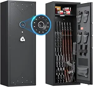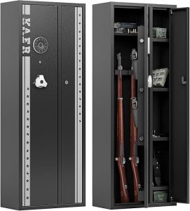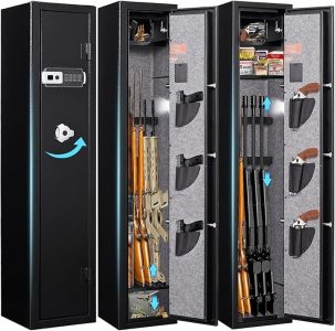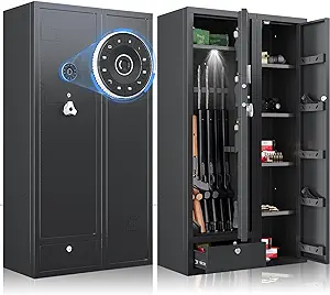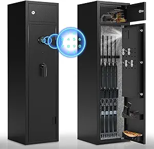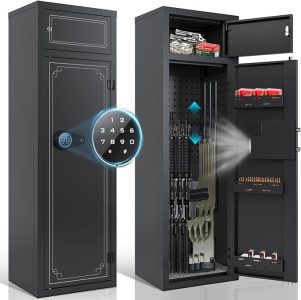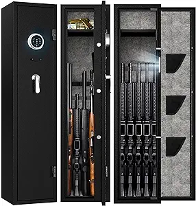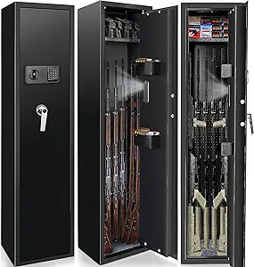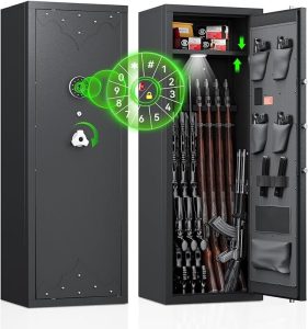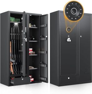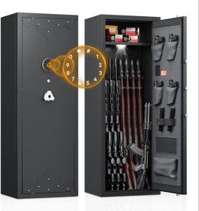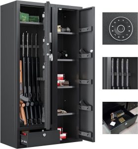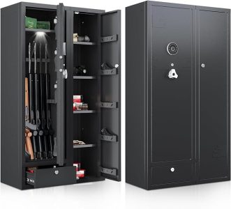 Owning firearms comes with the responsibility of keeping them secure and out of unauthorized hands. A gun safe with advanced security features, such as the 180° door opening quick access rifles and shotguns gun cabinet with removable gun racks, an anti-theft password lock, and an alarm system, offers the ultimate protection for your firearms. With its easy and quick access, versatile storage capacity, and enhanced security measures, this gun safe provides peace of mind while ensuring the safety of your firearms. Make the responsible choice and invest in a gun safe to protect your firearms, your loved ones, and your community.