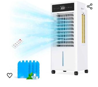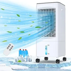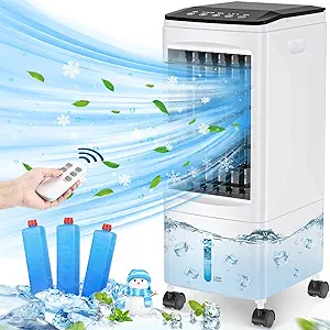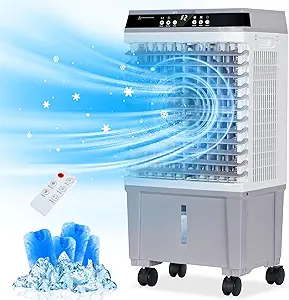 The air cooler comes with a generous 13.2-gallon water tank, ensuring extended operation without the need for frequent refills. The large capacity allows for continuous cooling for several hours, eliminating the hassle of constantly monitoring and refilling the unit. Additionally, the package includes four ice packs, which can be placed inside the water tank to further enhance the cooling effect. The cold air produced by the evaporation of water combined with the ice packs creates a refreshing and comfortable environment, perfect for those hot summer days.